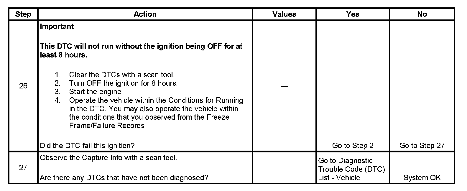 - A current DTC, Last Test Failed, clears when the diagnostic runs and passes.