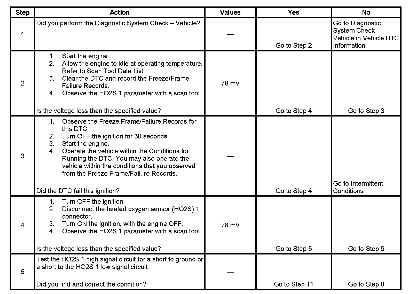 DTC P0131 HO2S Circuit Low Voltage Bank 1 Sensor 1