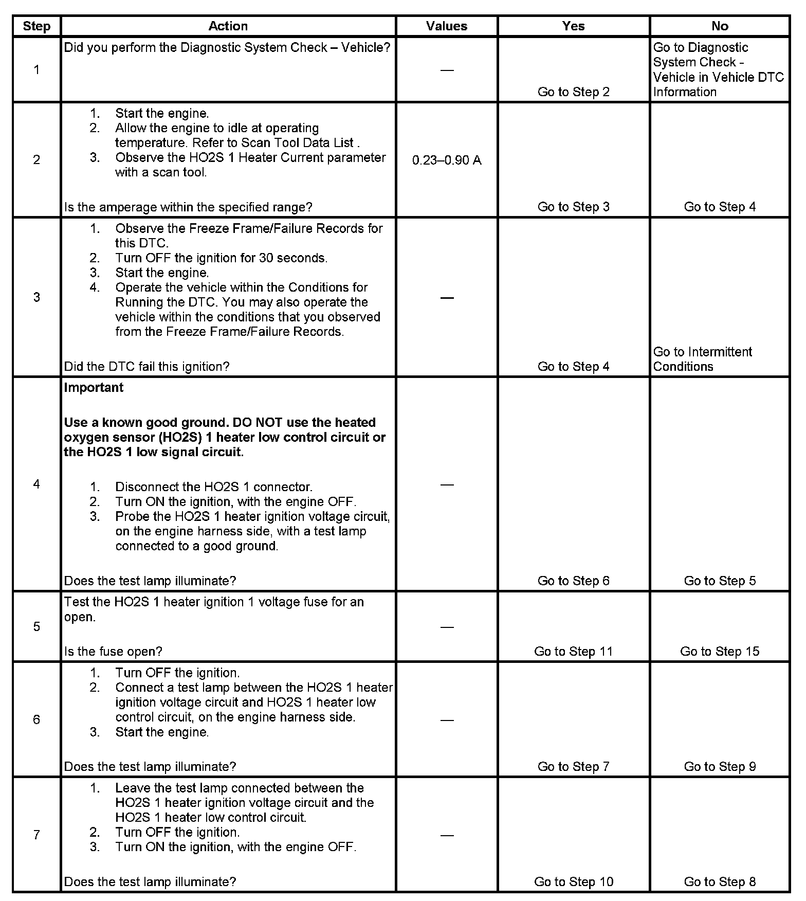 If the PCM detects that the HO2S 1 heater low control circuit current level is not within the calibrated range, DTC P0135 will set.