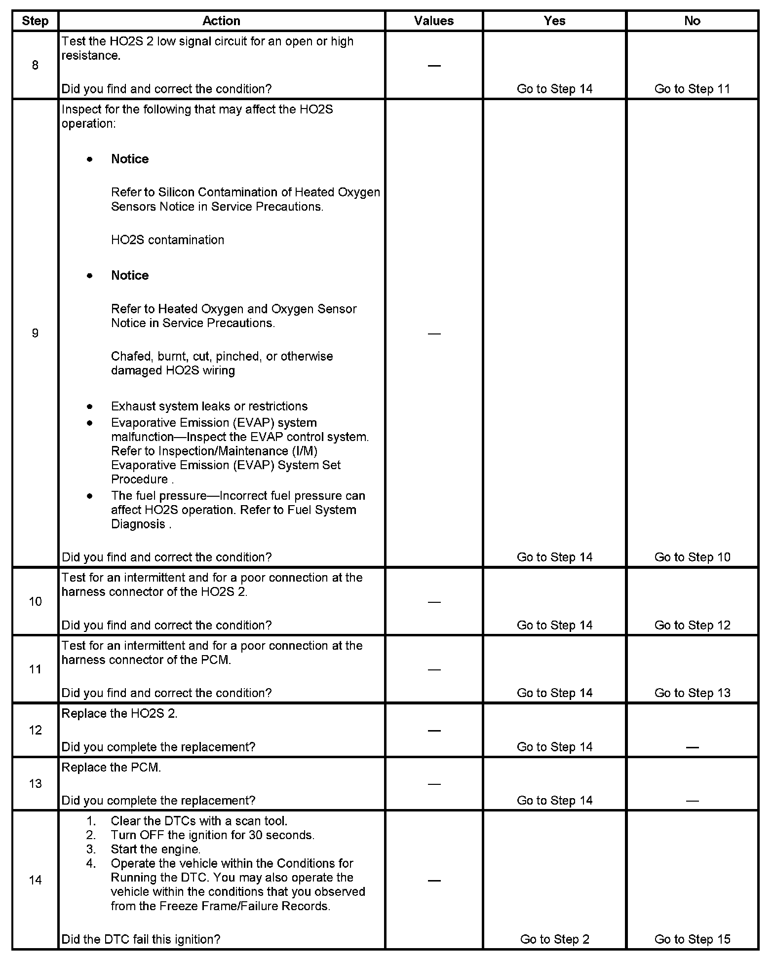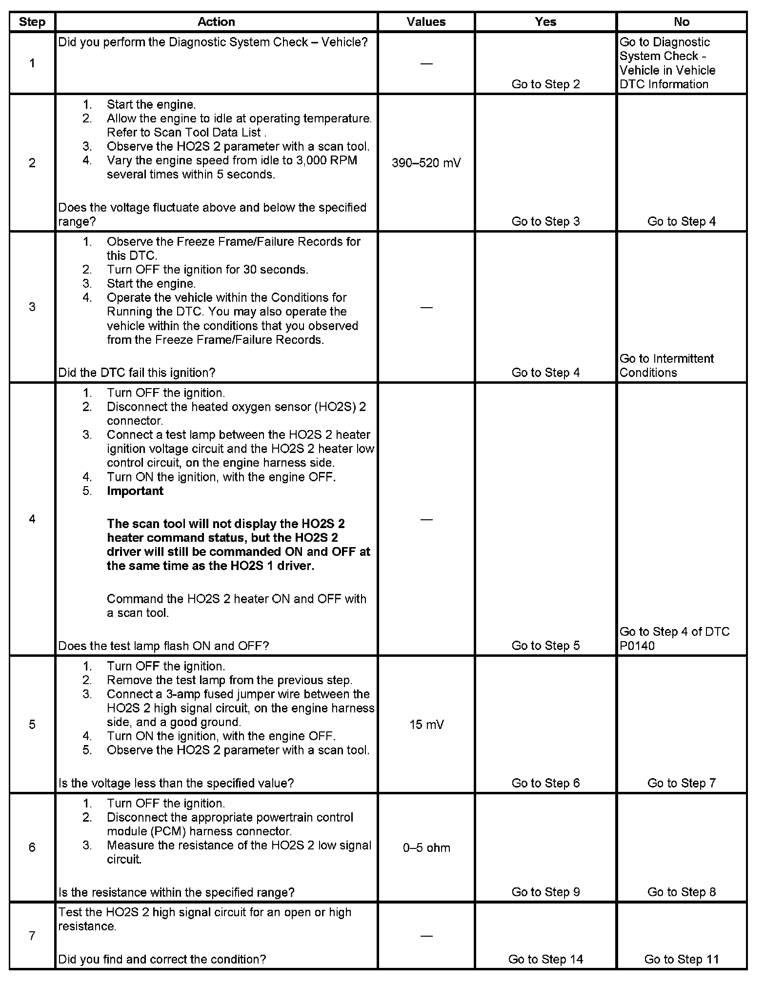 If the PCM detects that the HO2S 2 voltage remains at or near the bias voltage, DTC P0140 will set.