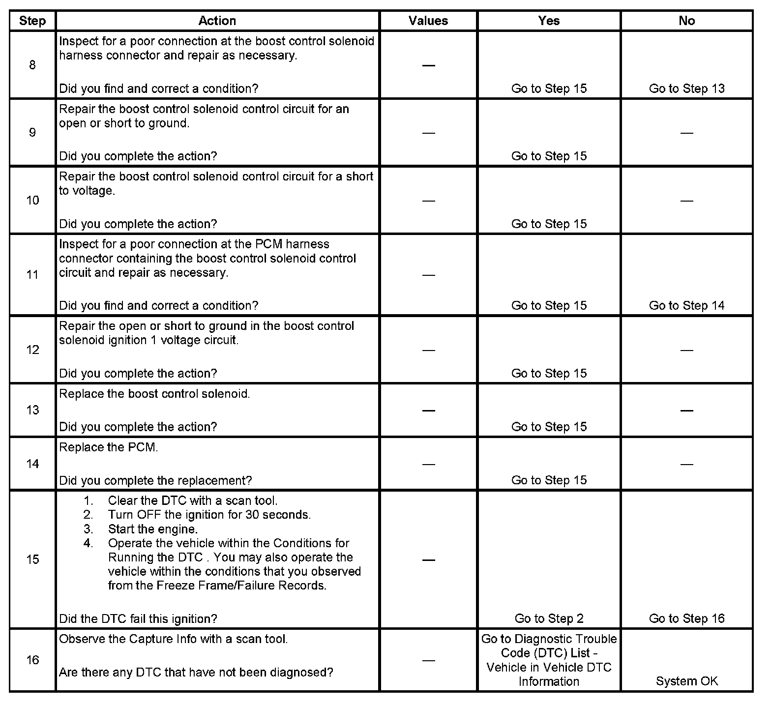 If a shorted condition is detected, the control module will stop activating the supercharger boost control solenoid driver for the remainder of the trip.