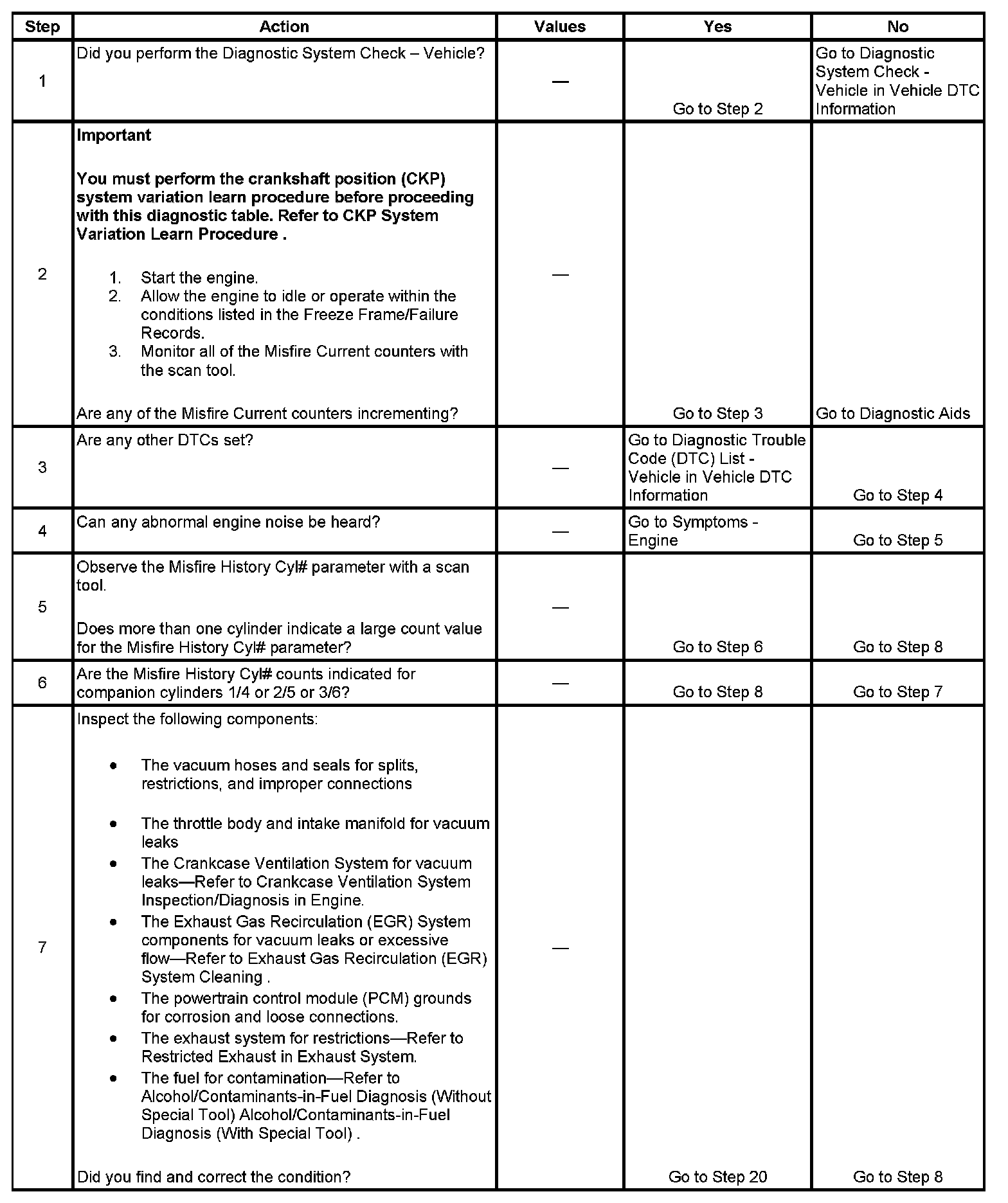 2. If the actual crankshaft position (CKP) variation values are not within the learned values, the misfire counters may increment.