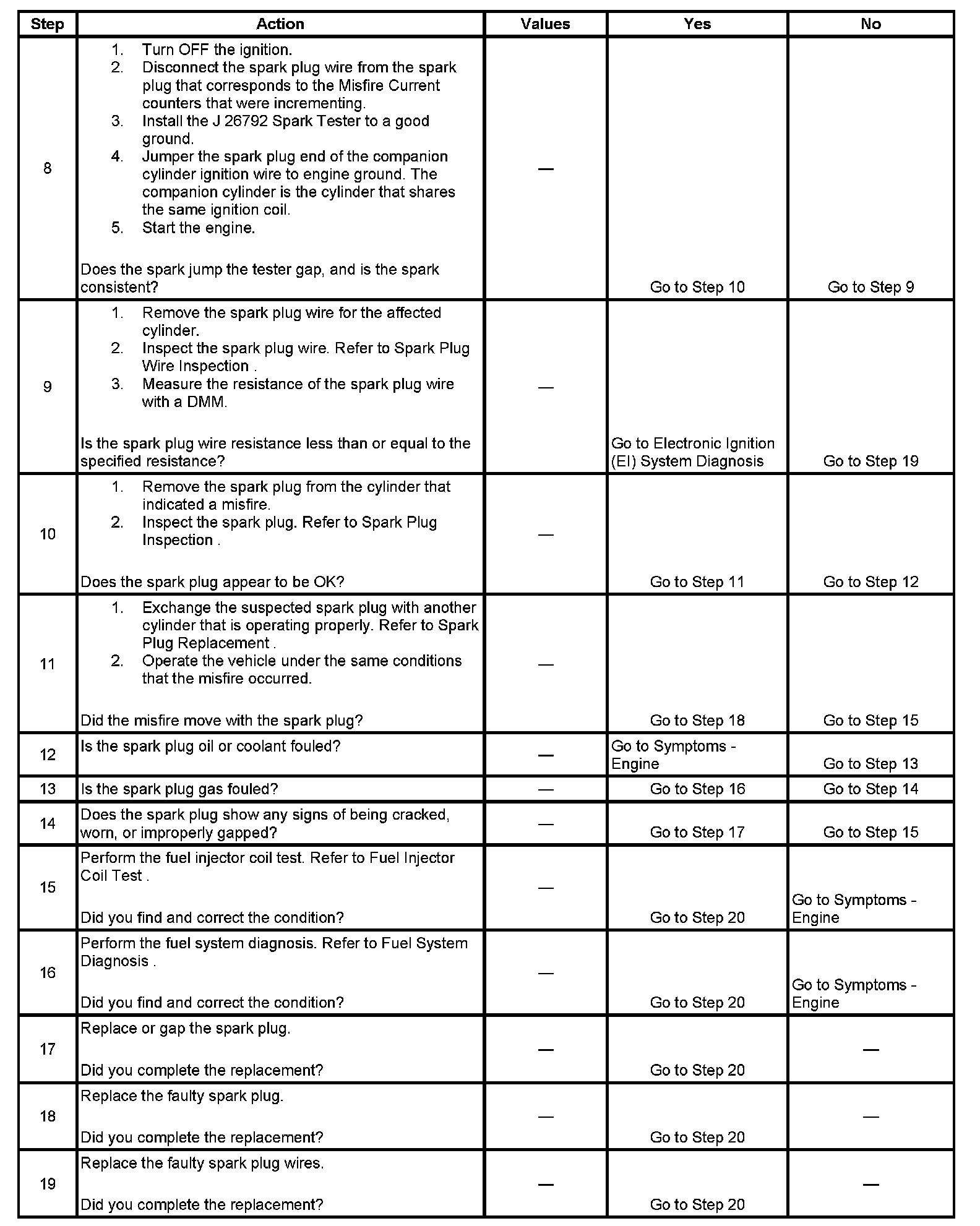 The number below refers to the step number on the diagnostic table.