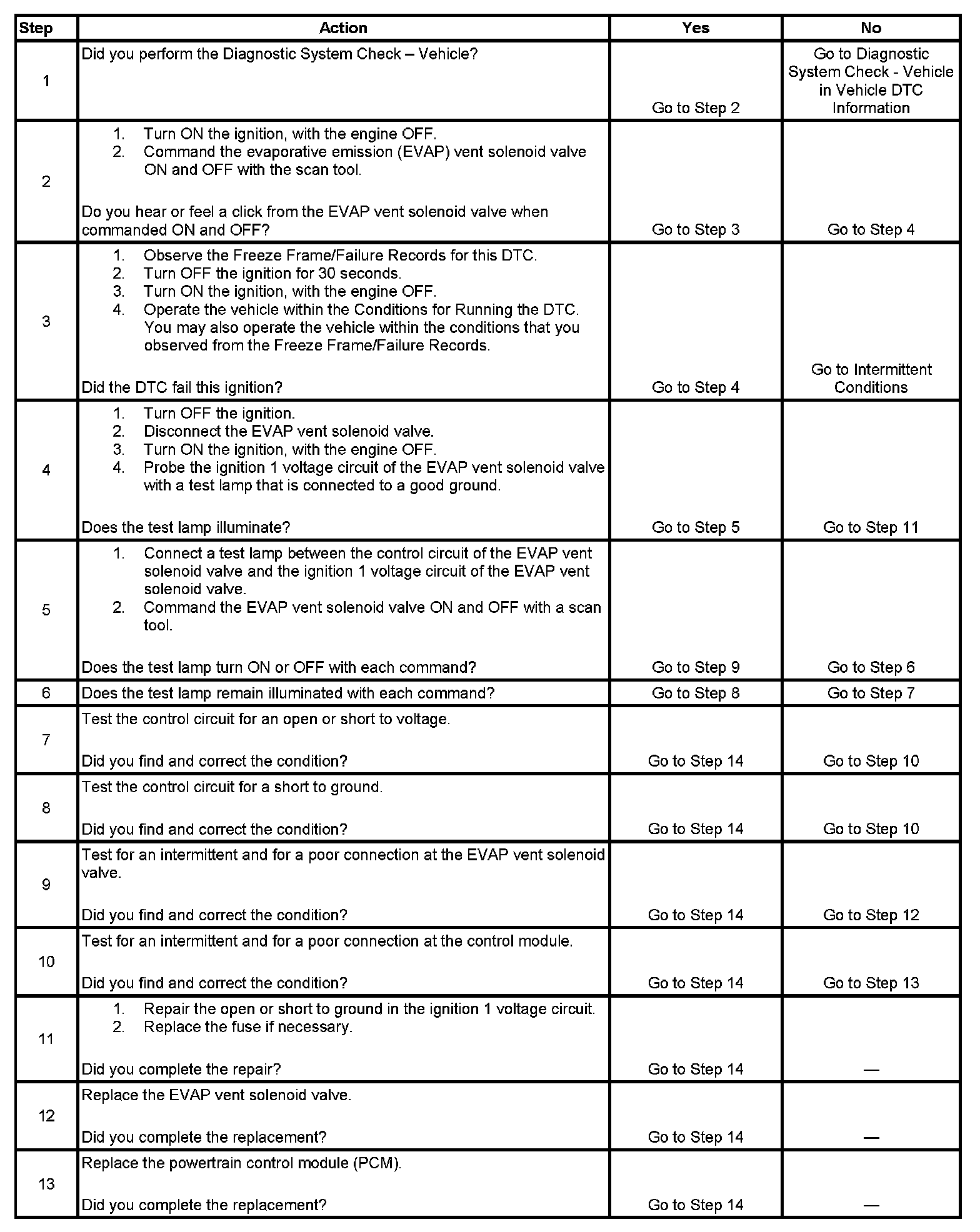 6. This step tests if the EVAP vent solenoid valve control circuit is grounded.