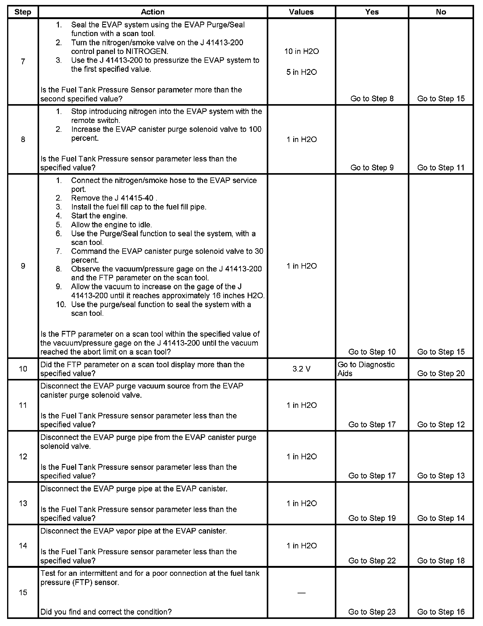 The numbers below refer to the step numbers on the diagnostic table.