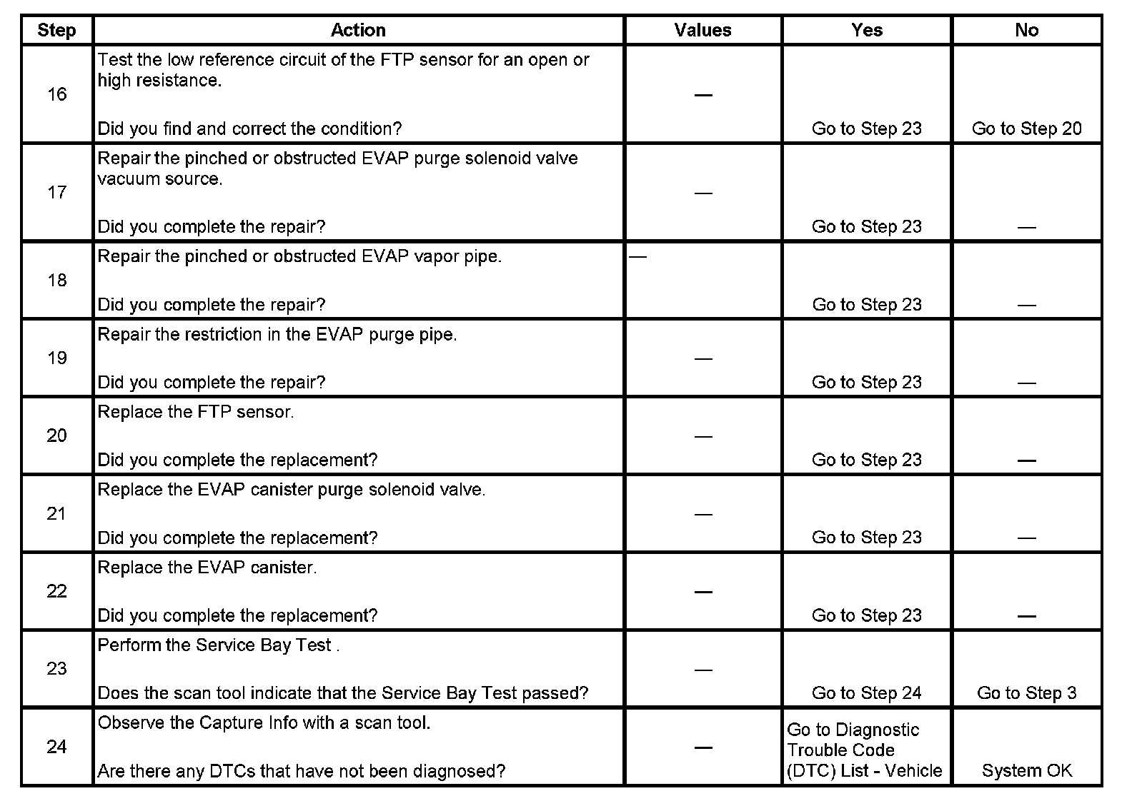 - A current DTC, Last Test Failed, clears when the diagnostic runs and passes.