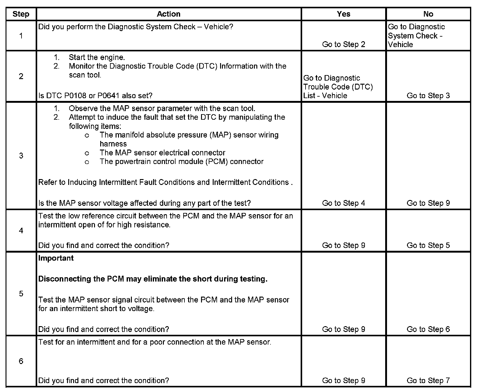 DTC P1106 Manifold Absolute Pressure (MAP) Sensor Circuit Intermittent High Voltage