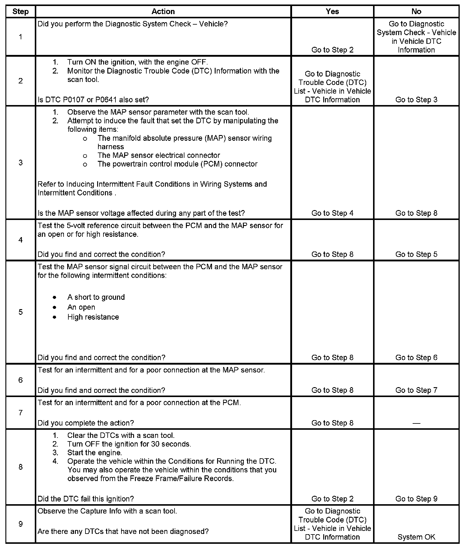 DTC P1107 Manifold Absolute Pressure (MAP) Sensor Circuit Intermittent Low Voltage