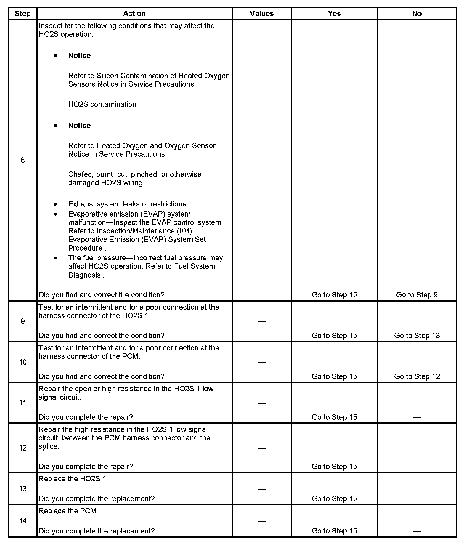 - The PCM detects that the HO2S 1 voltage transition time ratio from rich-to-lean and lean-to-rich is incorrect during a 90-second monitoring period.