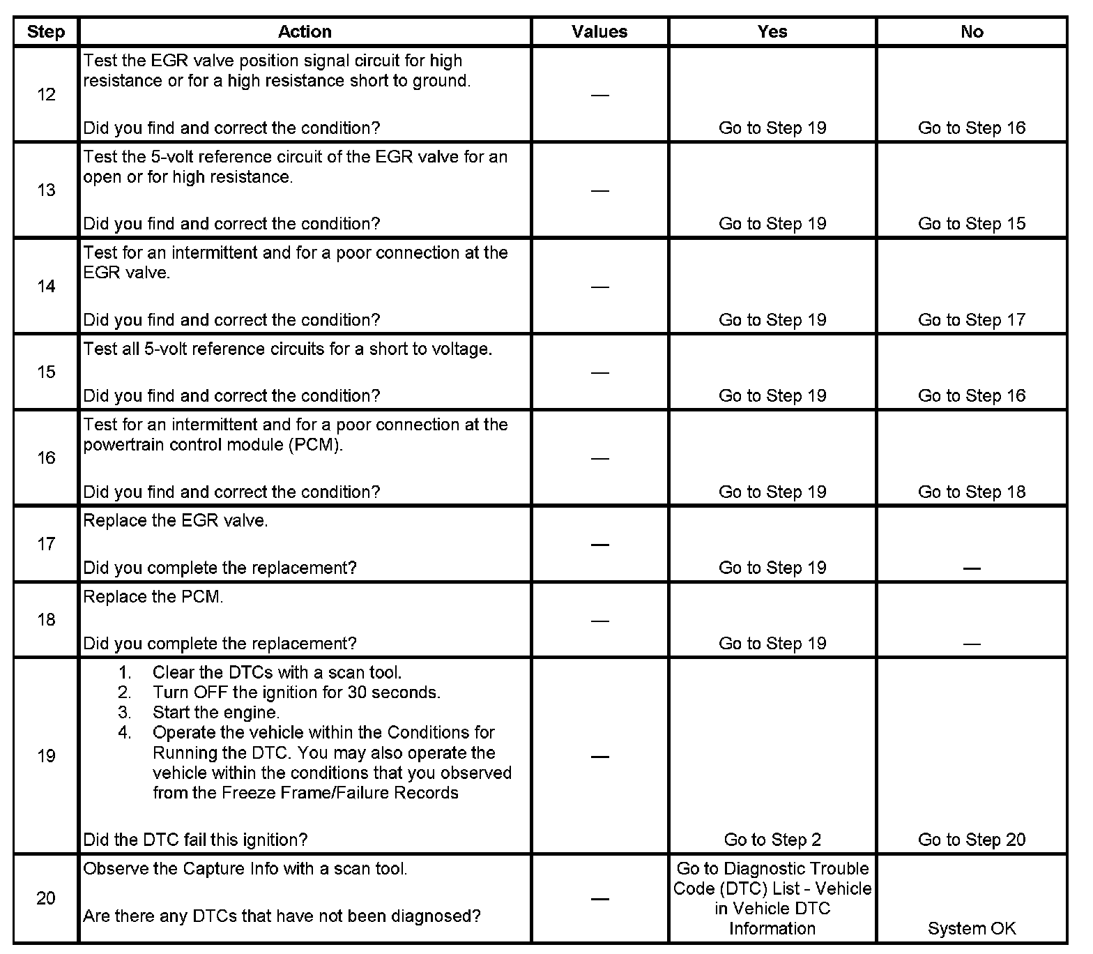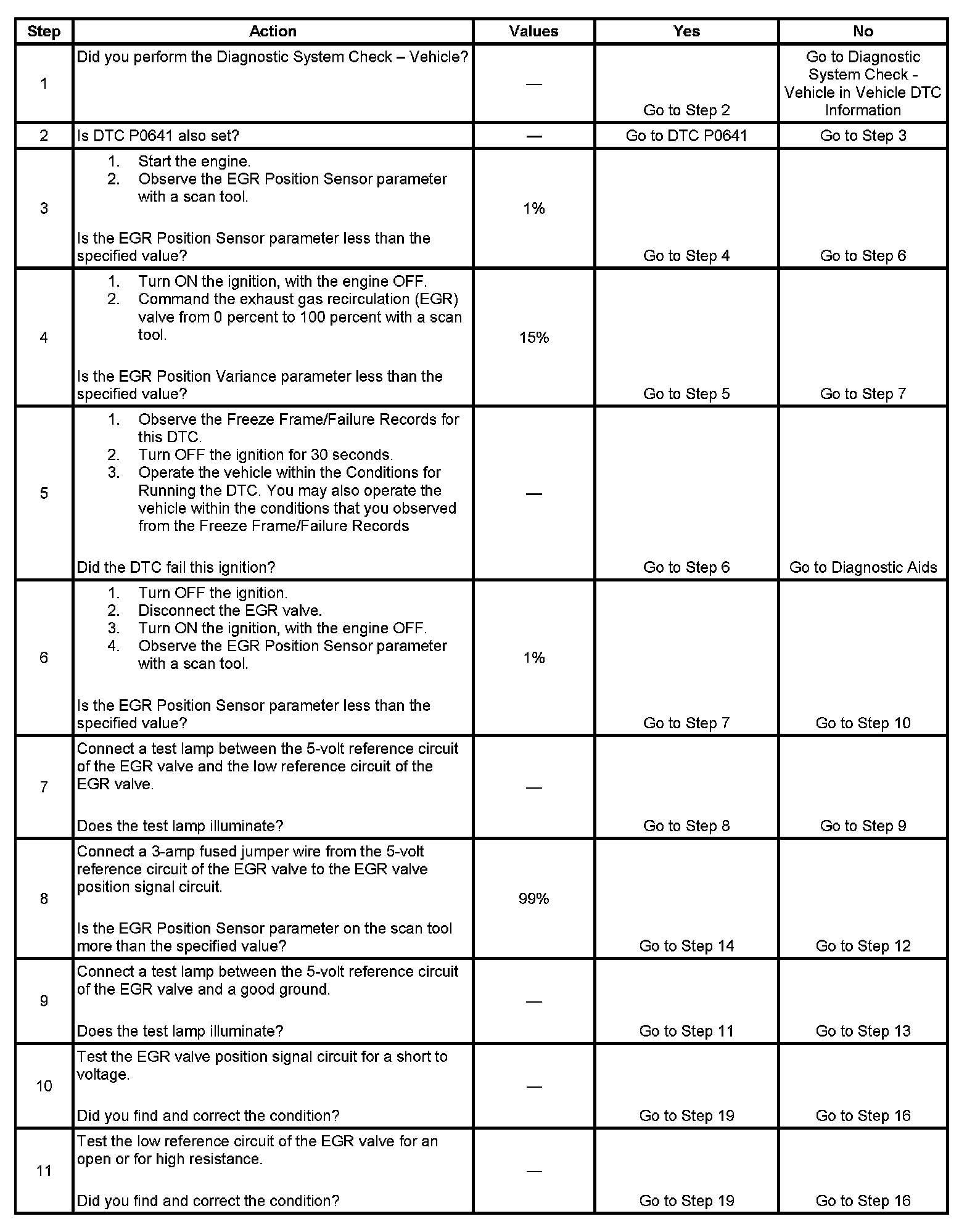 - The EGR Position Sensor parameter is more than 40 percent and is steady for 1 second after a test failure and before the next test will be run.