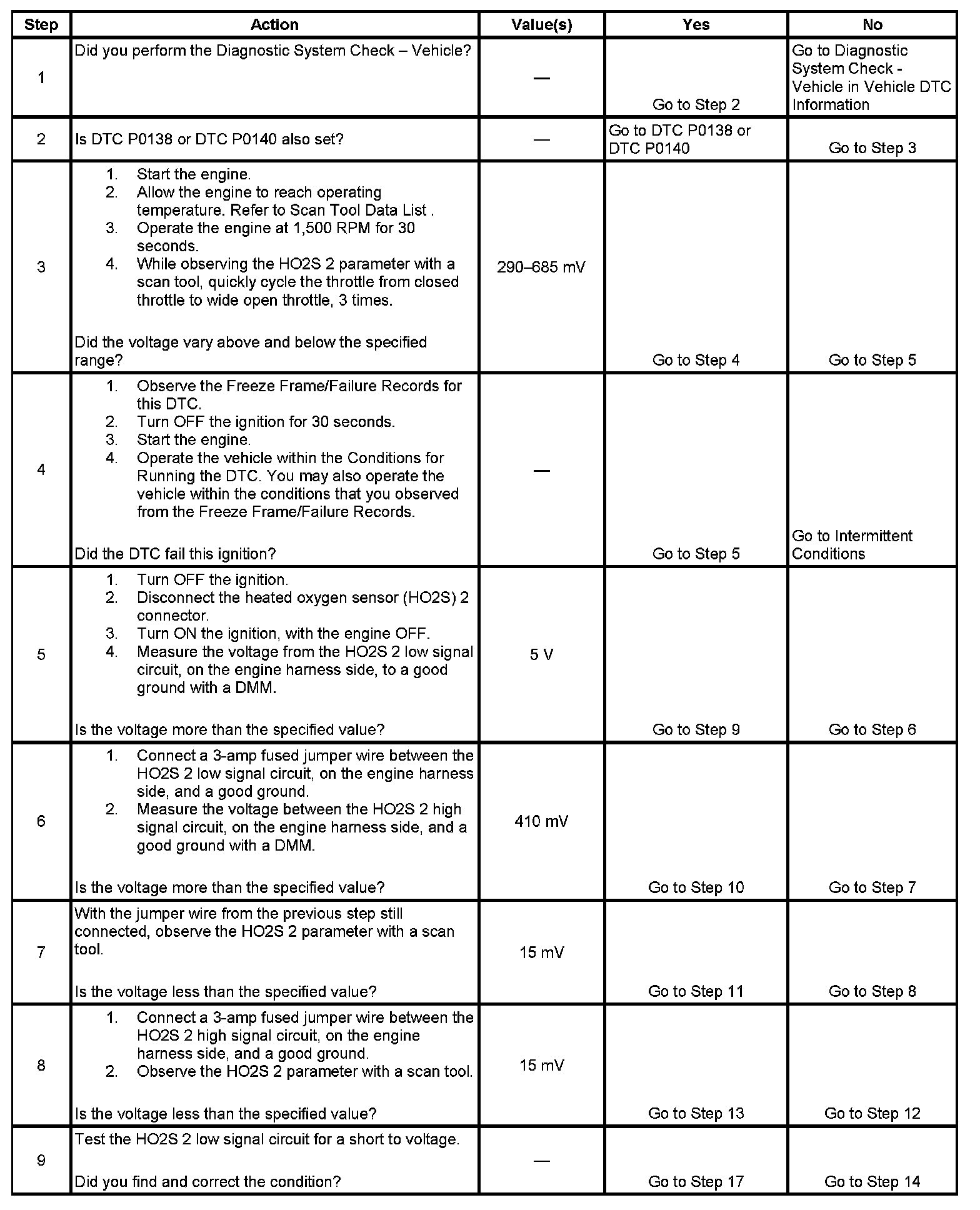 - The HO2S 2 cannot achieve a voltage above 685 mV 11.4 seconds and/or below 290 mV for 11.4 seconds. during the intrusive test.
