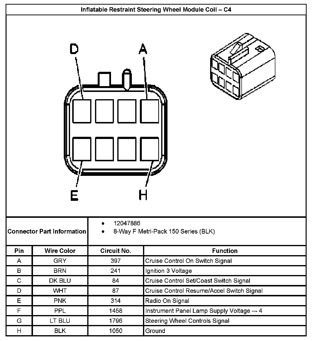 Inflatable Restraint Steering Wheel Module Coil - C4: