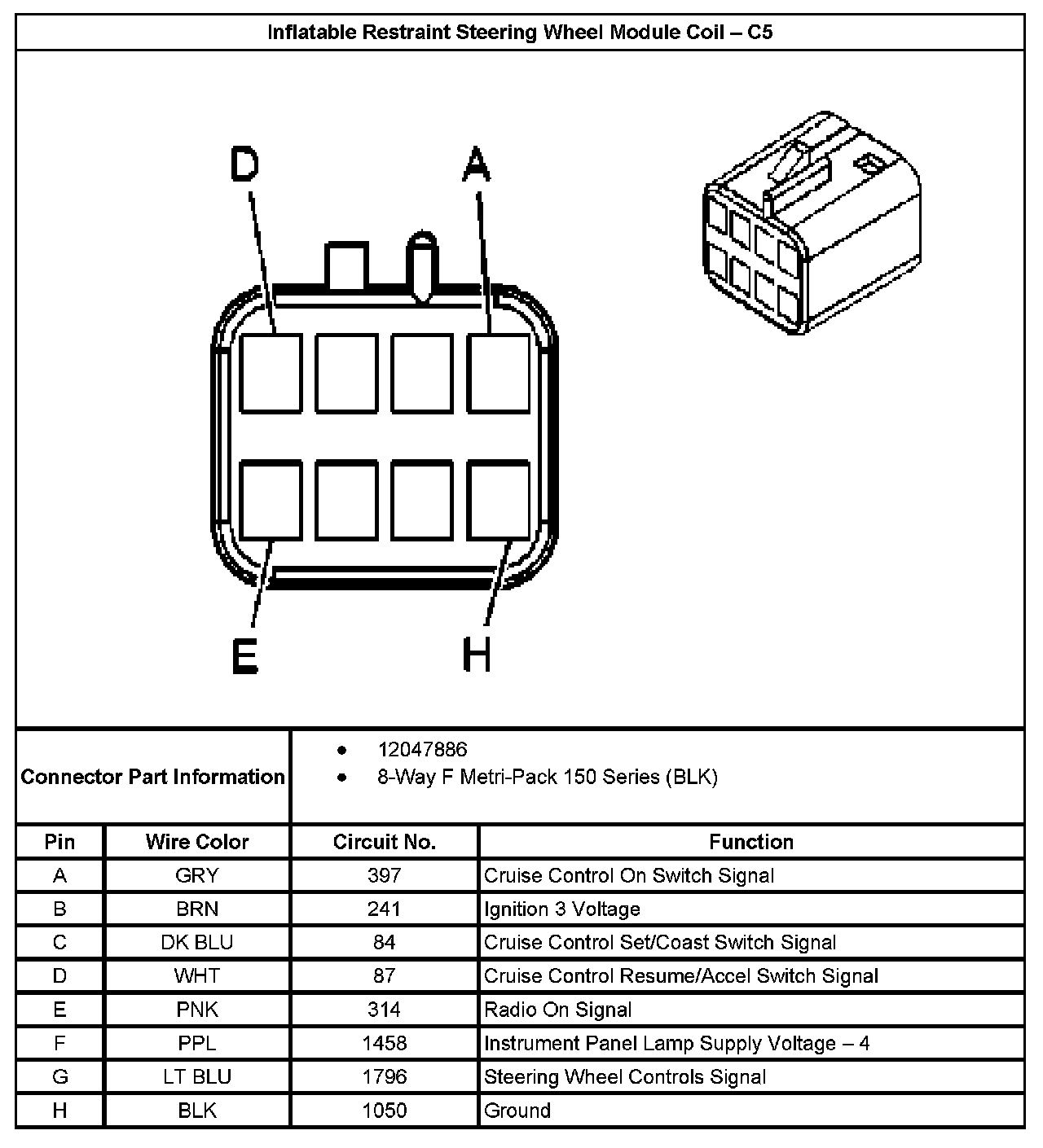 Inflatable Restraint Steering Wheel Module Coil - C5: