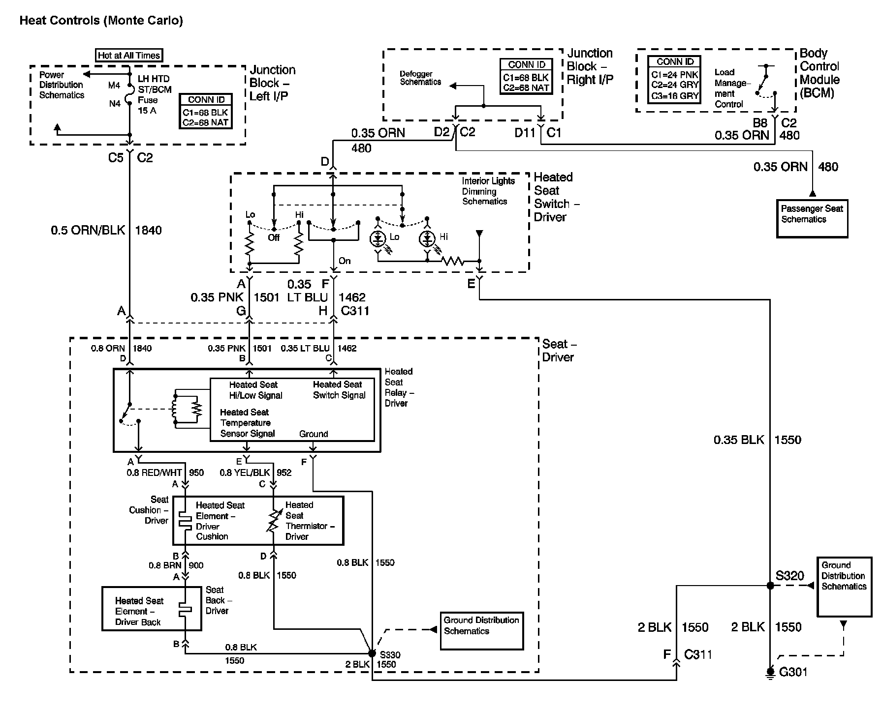 The locations for the Connectors, Grounds, Splices, and Grommets shown within these diagrams can be found via their numbers at Vehicle Locations.