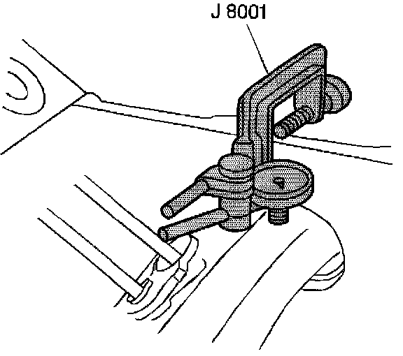 6. Using J 8001 measure the balance shaft end play. End play must not exceed 0.028 mm (0.008 inch).