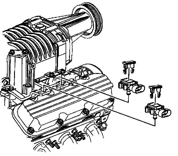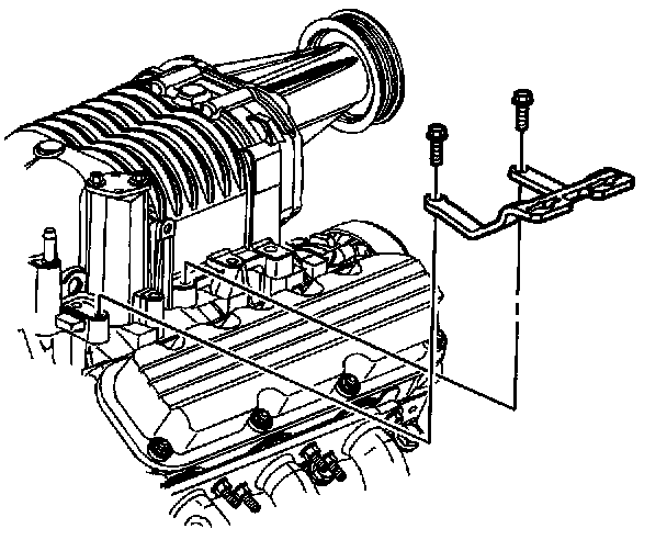 4. Install the spacers, bolts, and stud to the supercharger in the proper locations.
