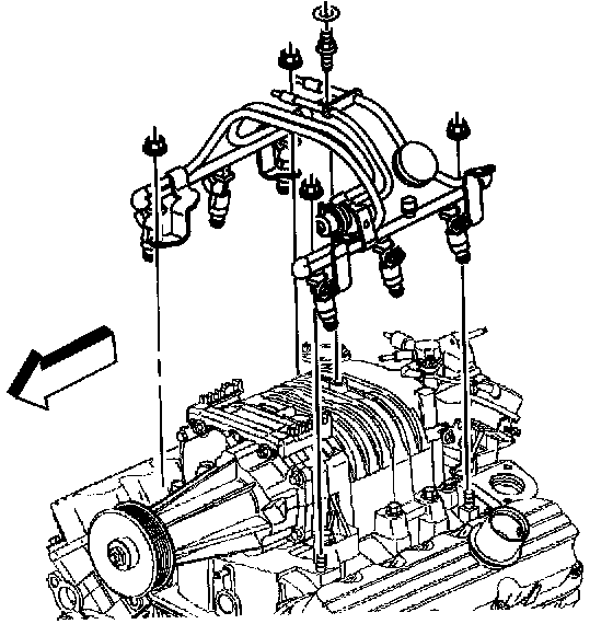 - Tighten the fuel rail nuts and stud to 10 Nm (89 inch lbs.).