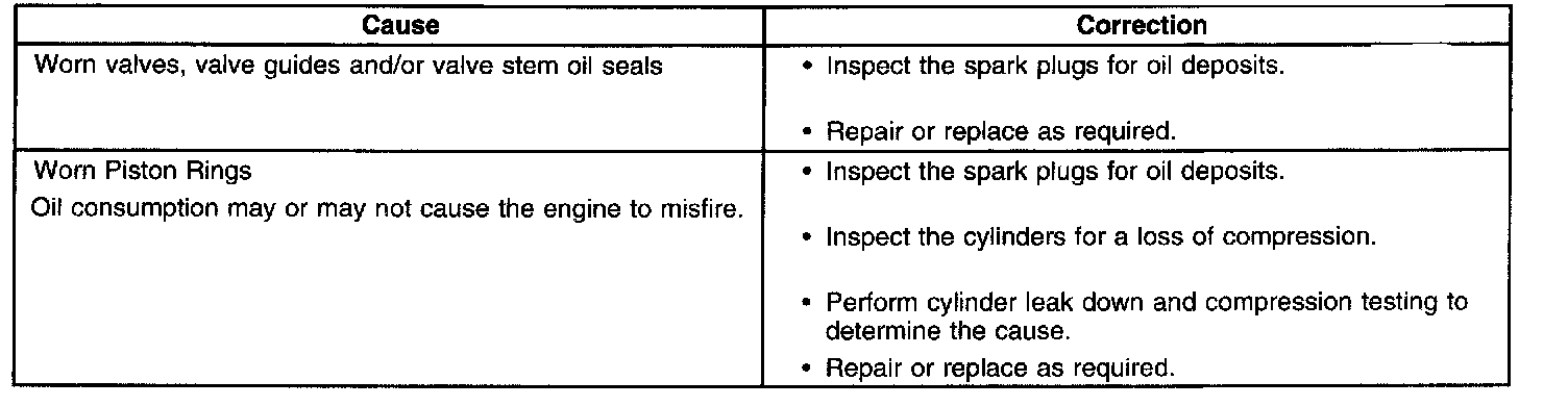 Base Engine Misfire With Excessive Oil Consumption