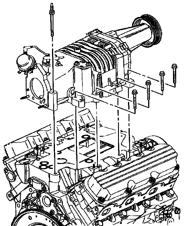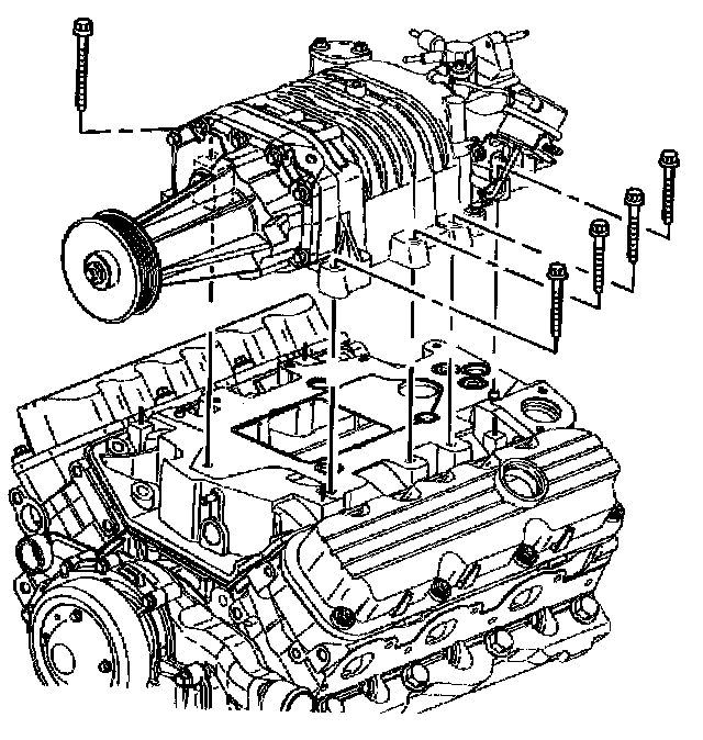 - Tighten the supercharger bolts starting from the center and working to the outside of the supercharger to 23 Nm (17 ft. lbs.).