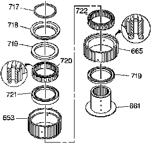 9. Insert the input clutch sprag assembly (722) into the input clutch sprag outer race (665).