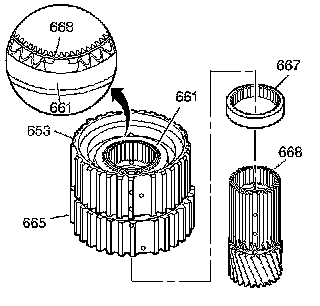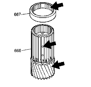 18. Assemble the input sun gear spacer (667) onto the input sun gear (668).