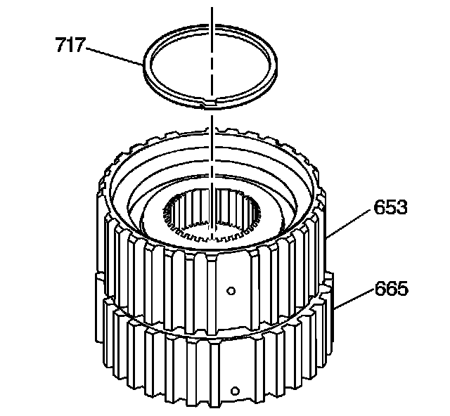 16. Install the 3rd clutch sprag outer race retainer (718) onto the third clutch sprag outer race (653).