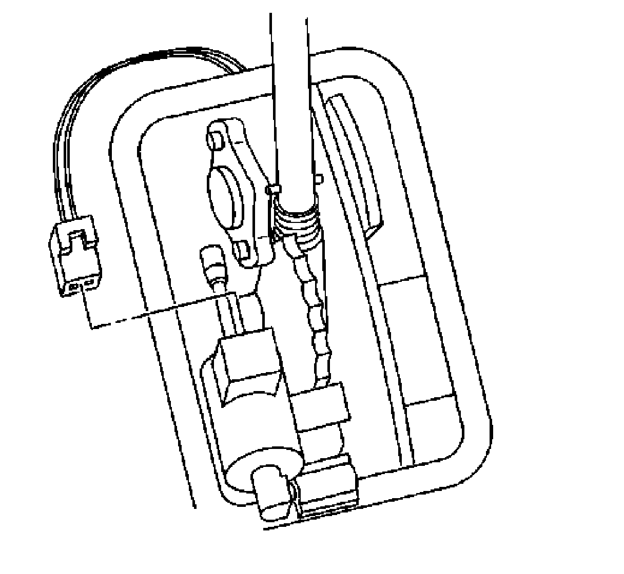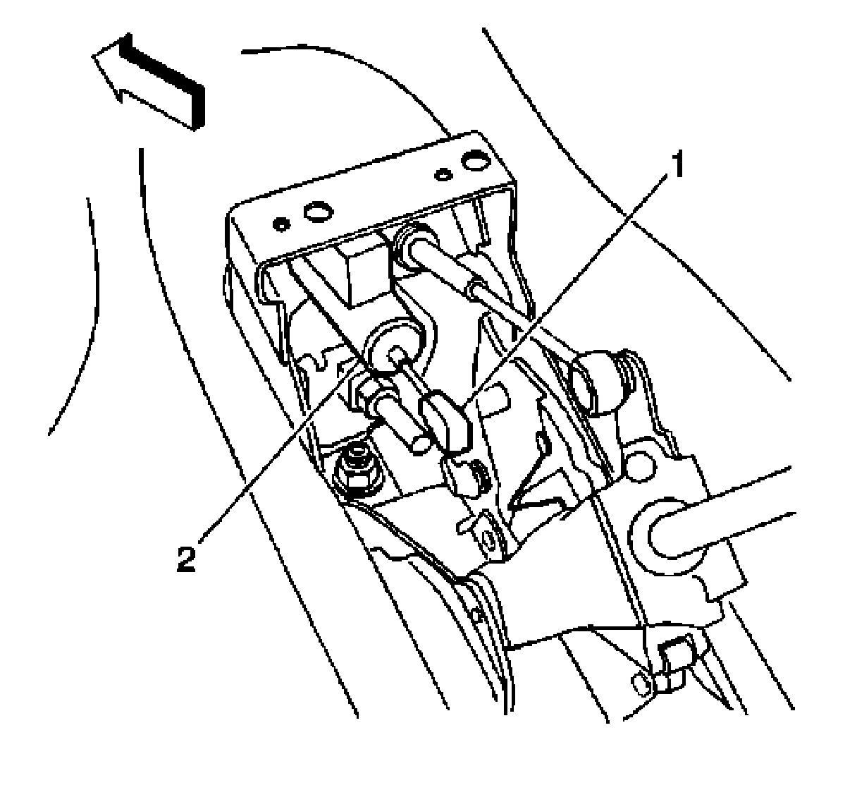 1. Install the automatic shift lock actuator to the base of the shift lock control and the pivot point (1).