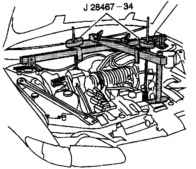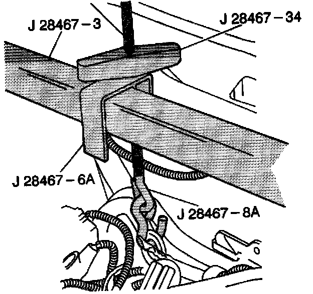 13. Install the cross bracket assembly J 28467-1A.