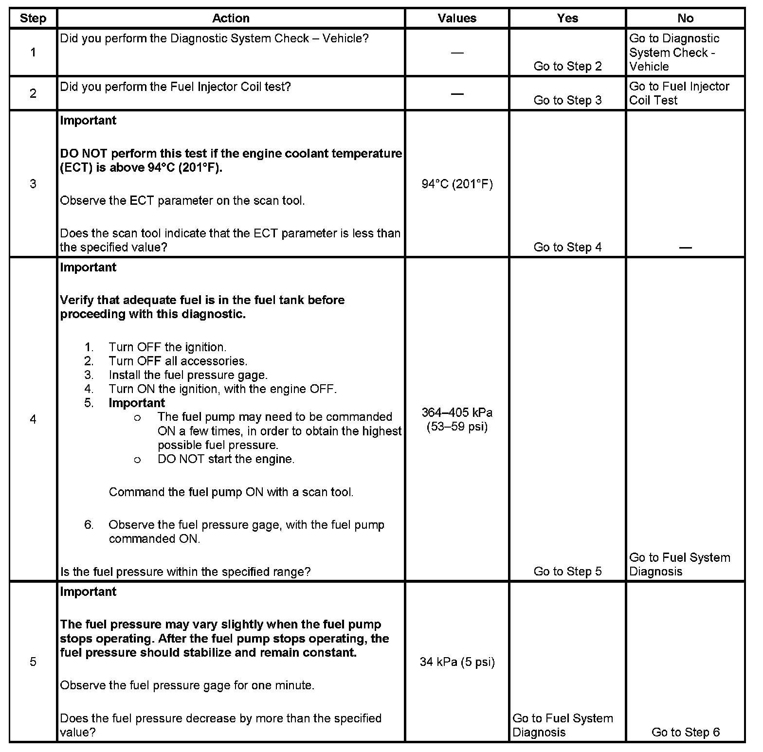 3. The engine coolant temperature (ECT) must be below the operating temperature in order to avoid irregular fuel pressure readings due to hot soak fuel boiling.