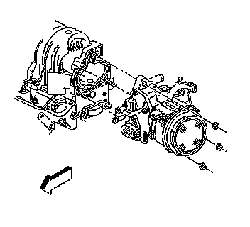 - Use care in cleaning the gasket surfaces on the intake manifold and the throttle body assembly, as sharp tools may damage the gasket surfaces.