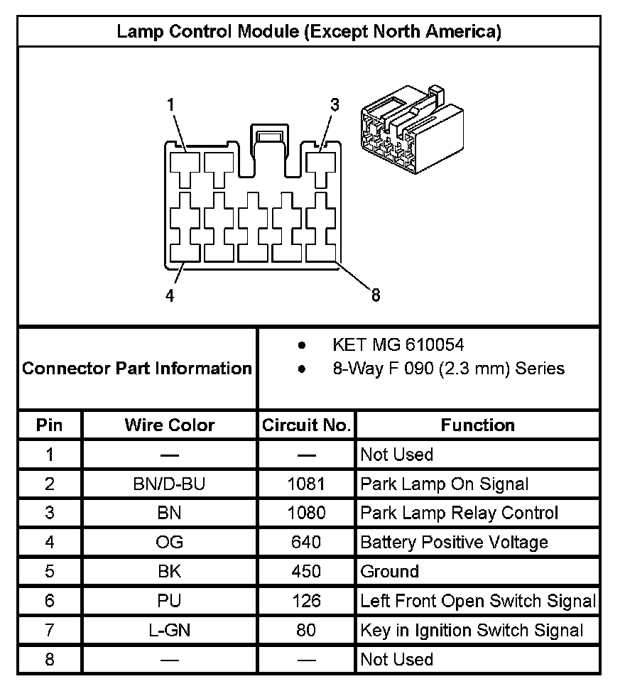 Lamp Control Module (Except North America):