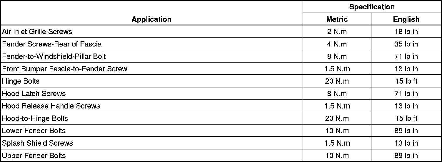 Fastener Tightening Specifications