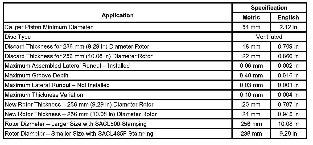 Disc Brake Component Specifications