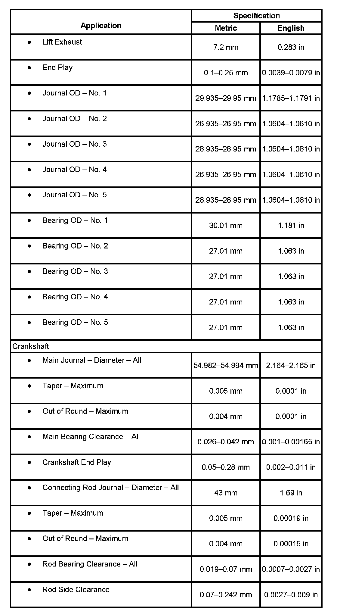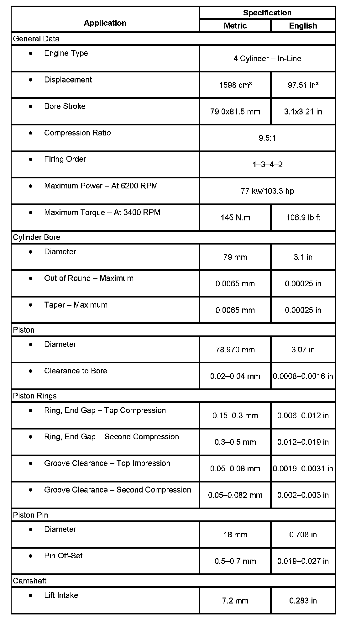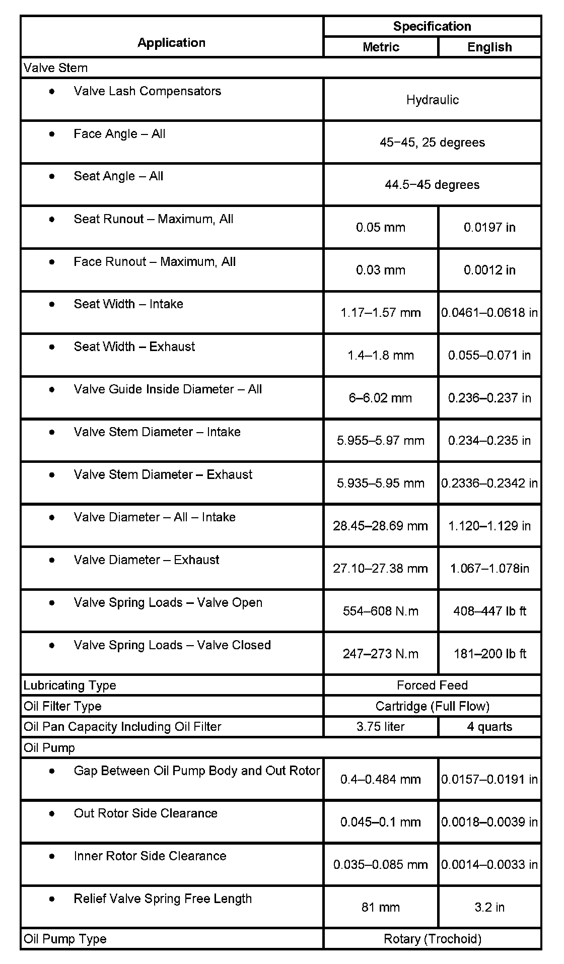 Engine Mechanical Specifications: