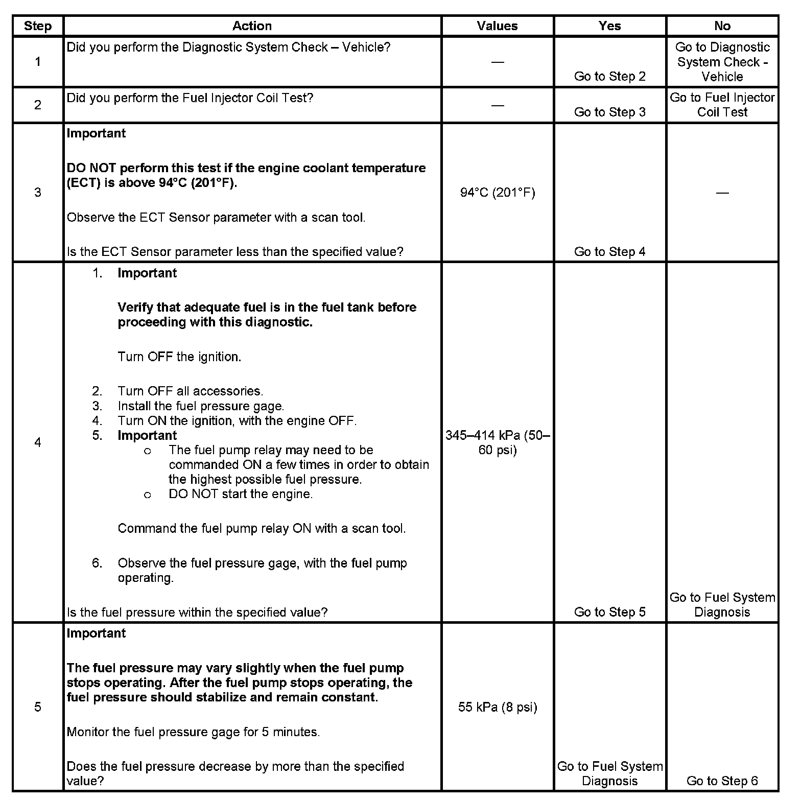 3. The engine coolant temperature (ECT) must be below the operating temperature in order to avoid irregular fuel pressure readings due to hot soak fuel boiling.