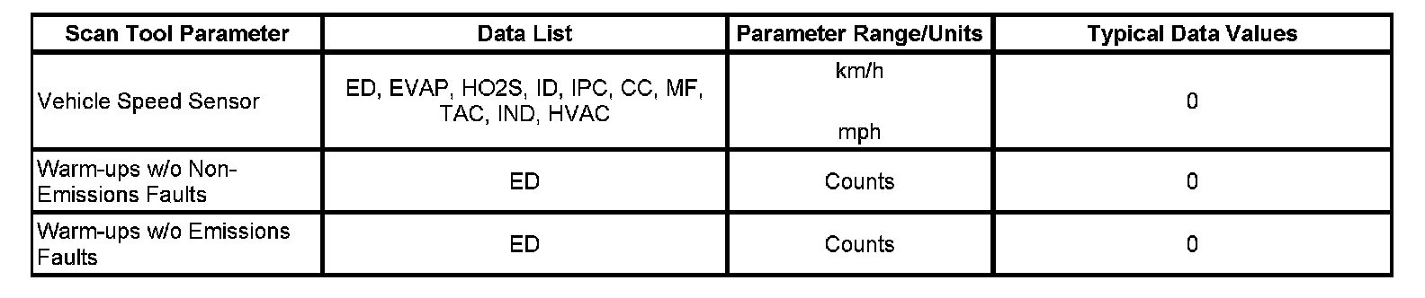 The column labeled Data List indicates where a parameter can be located on the scan tool. Refer to the scan tool operating manual for the exact locations of the data lists. The following is a description of each term listed: