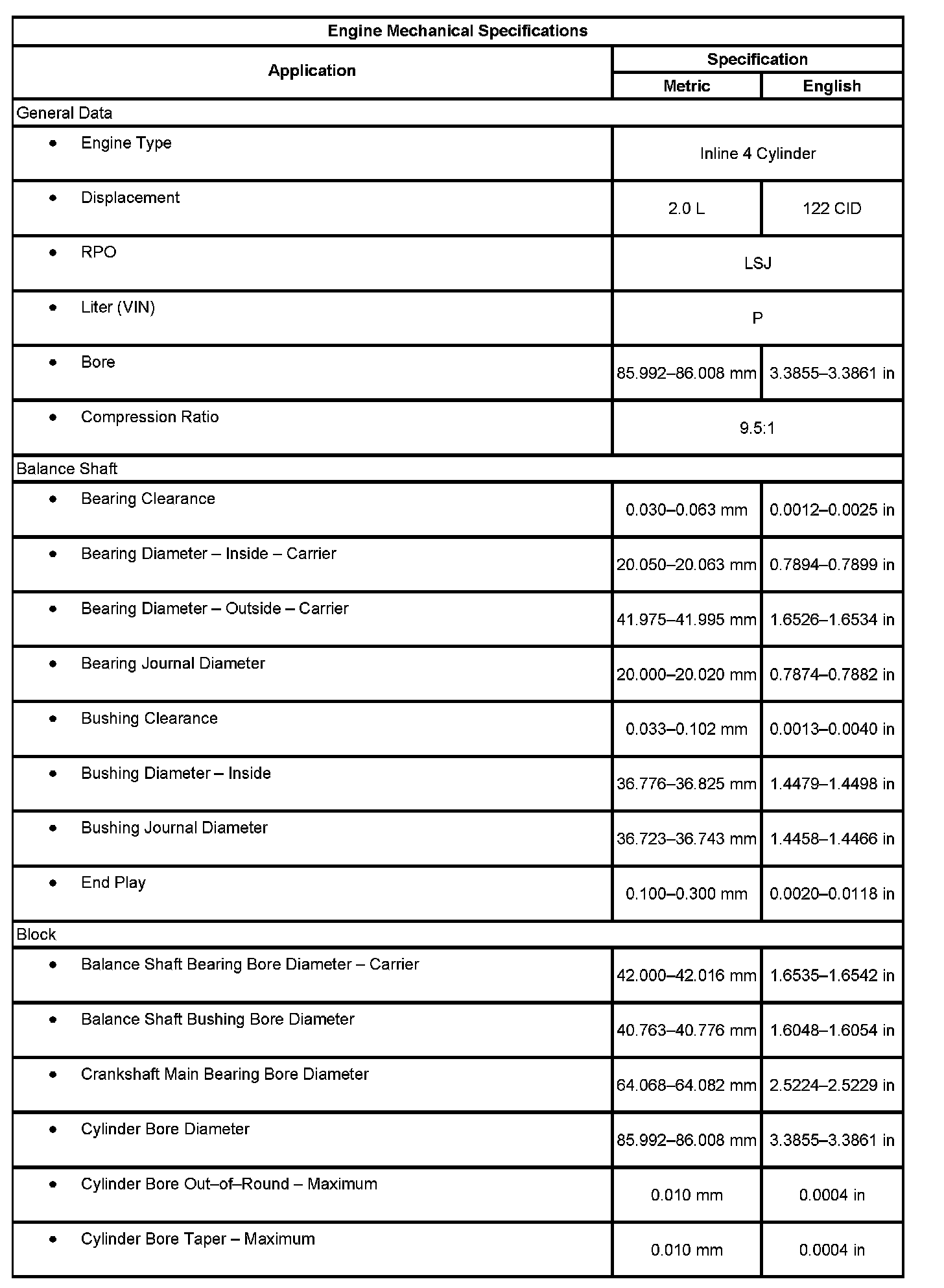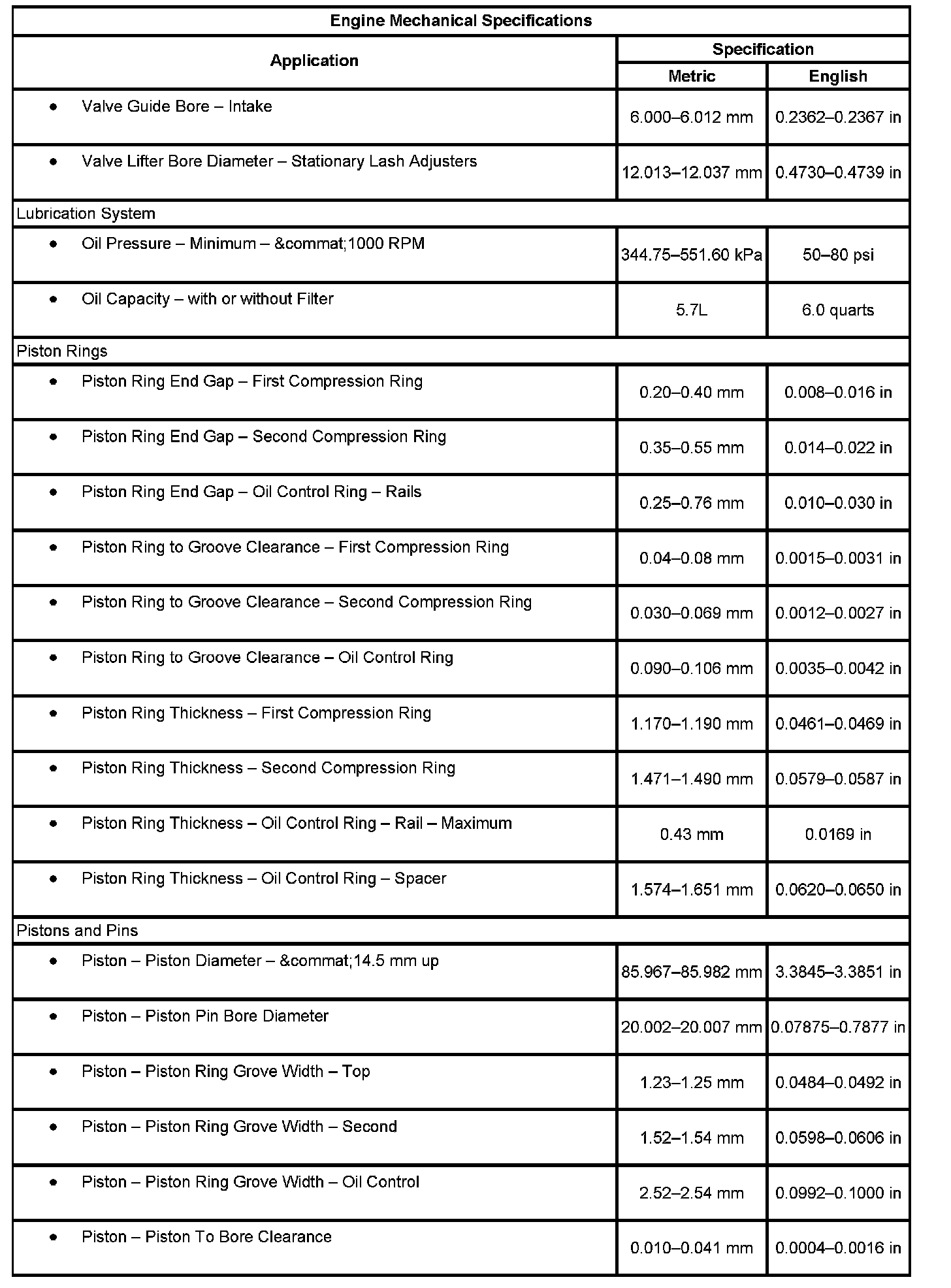 Engine Mechanical Specifications (Part 2):