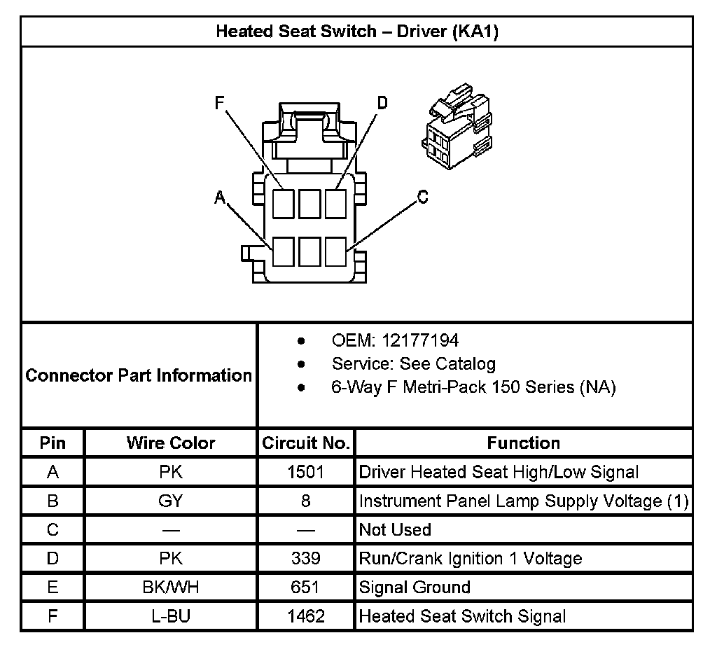 Heated Seat Switch - Driver (With RPO Code KA1):