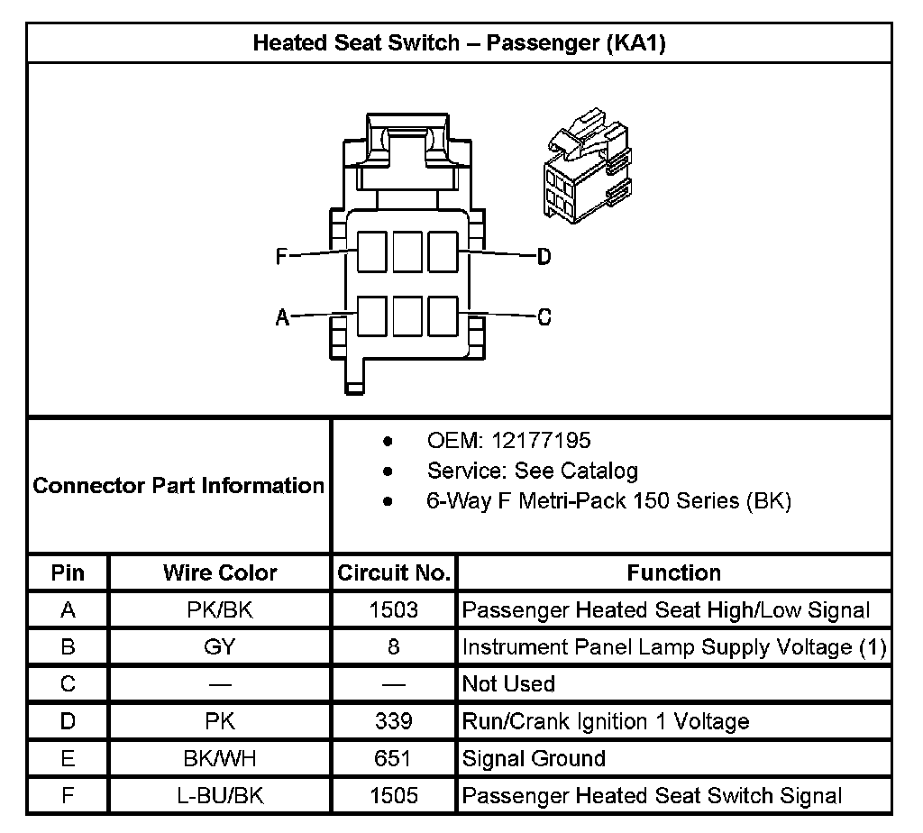 Heated Seat Switch - Passenger (With RPO Code KA1):