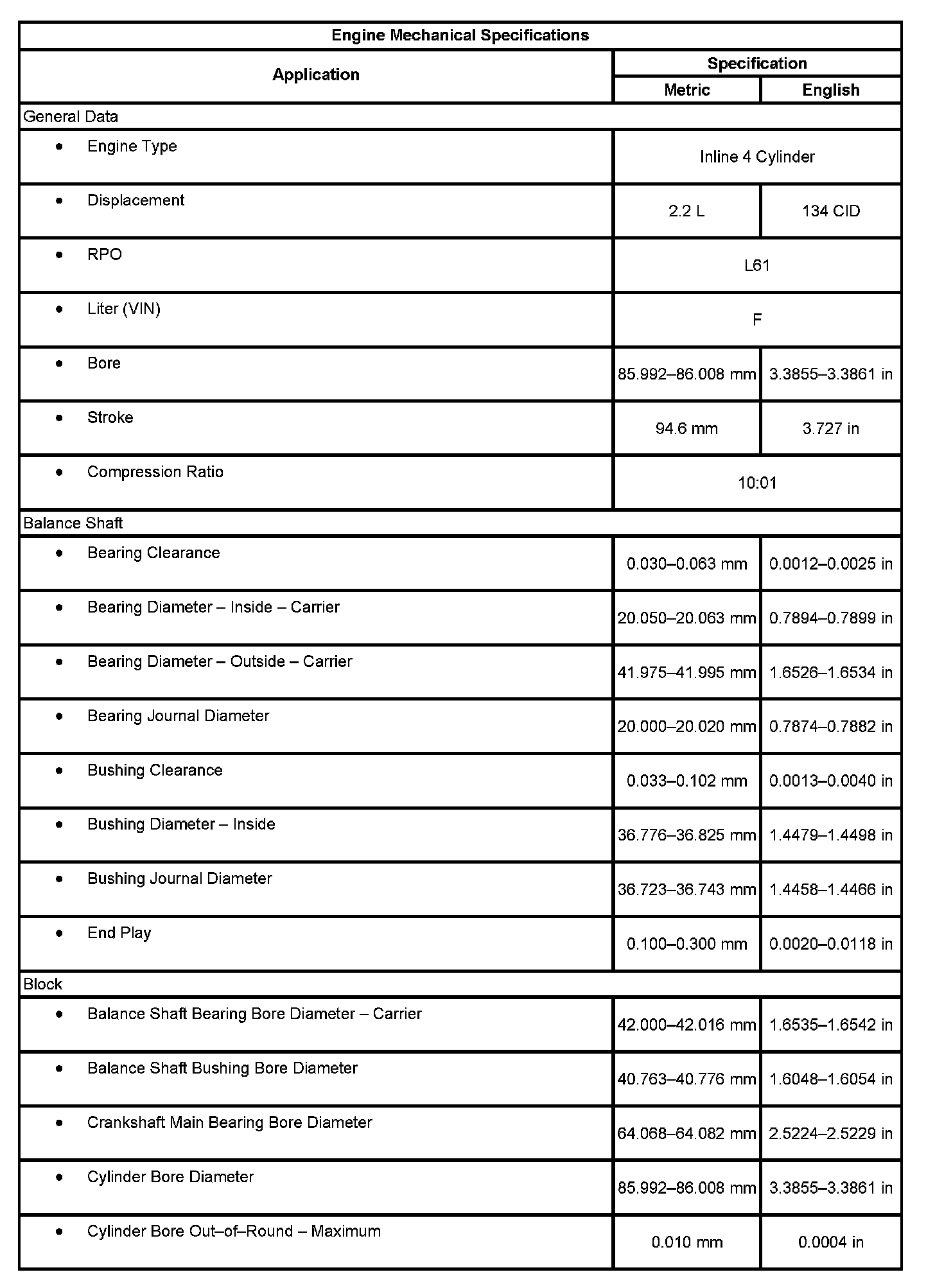 Cobalt L4-2.2L VIN F