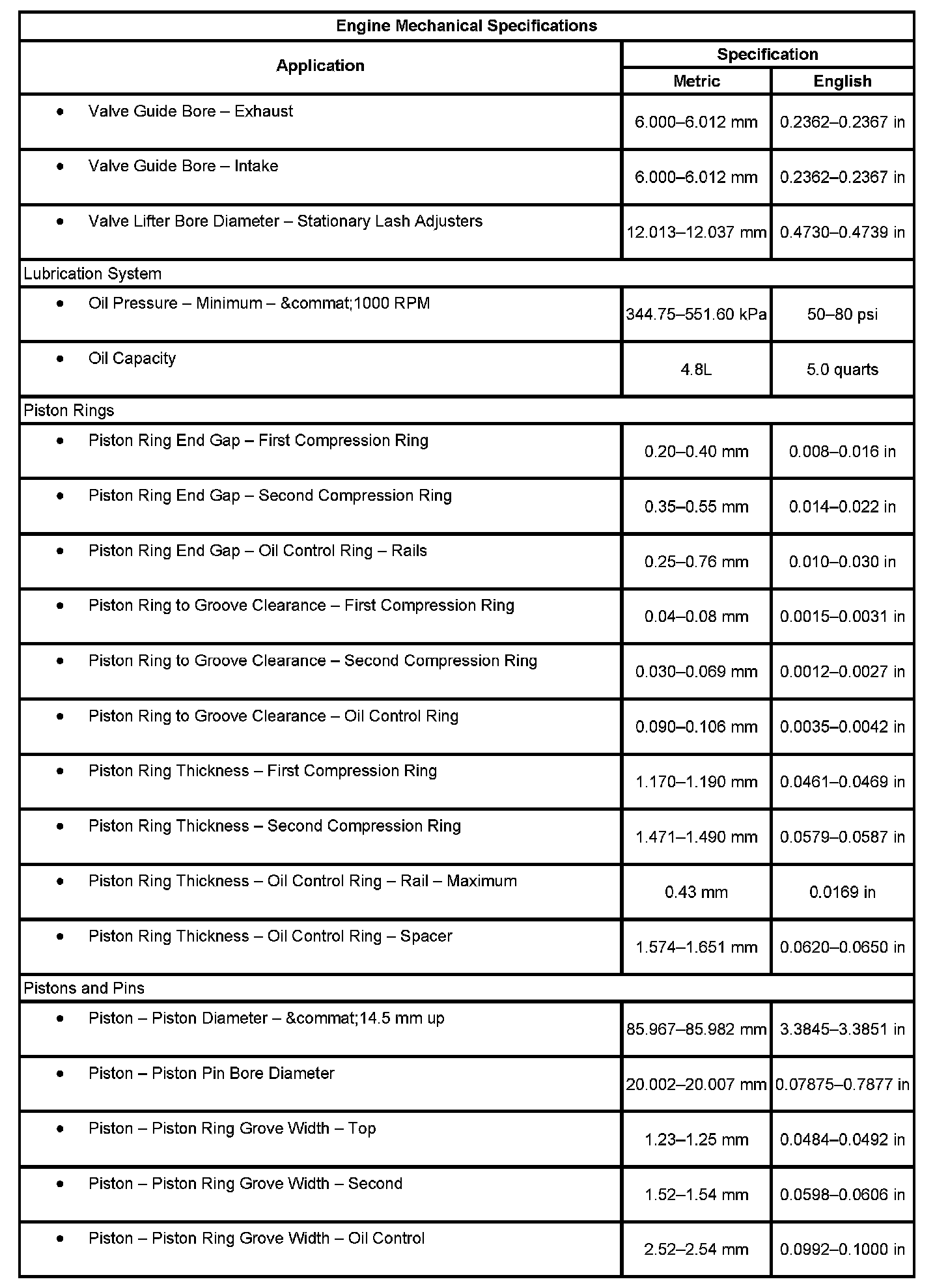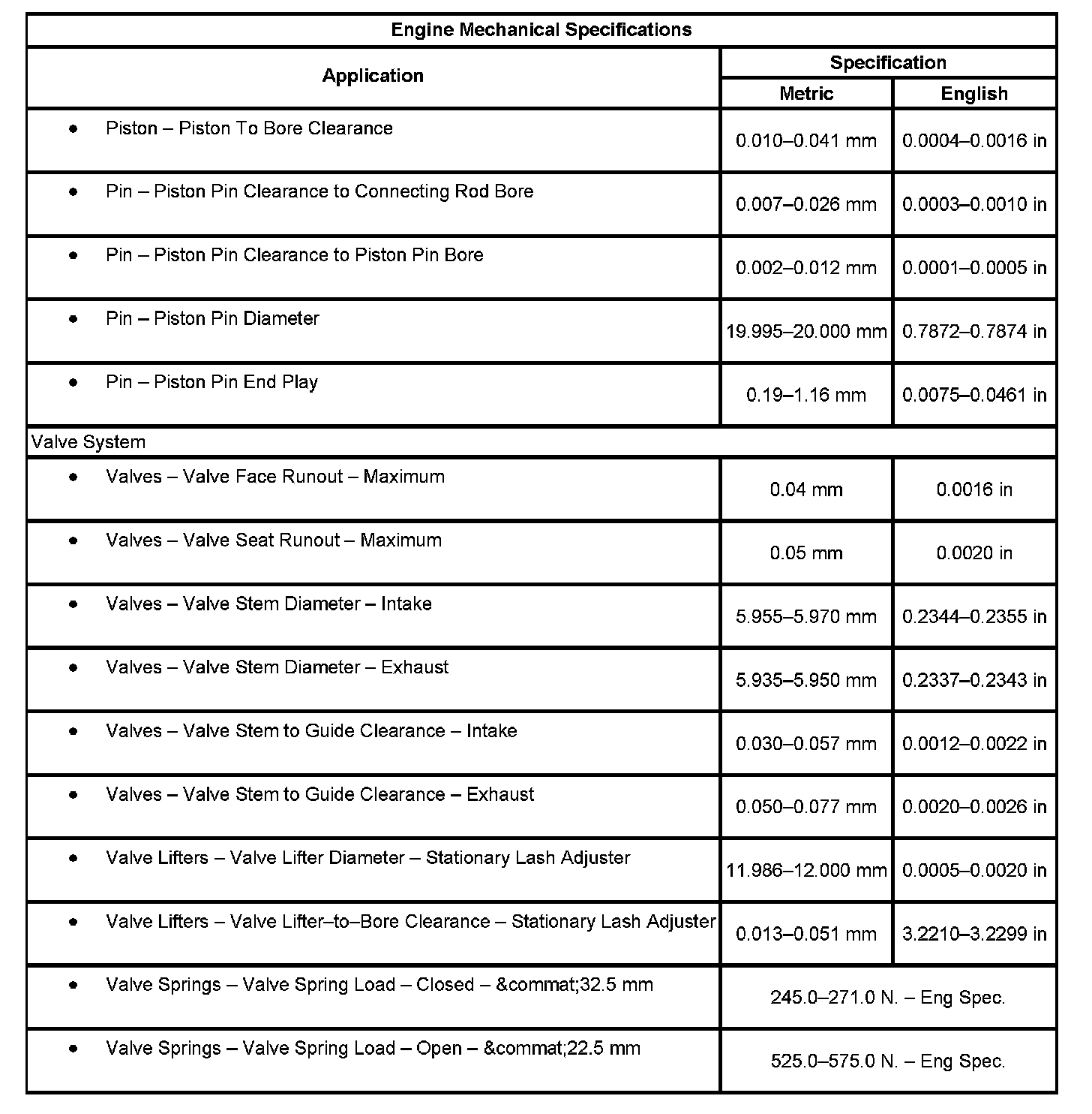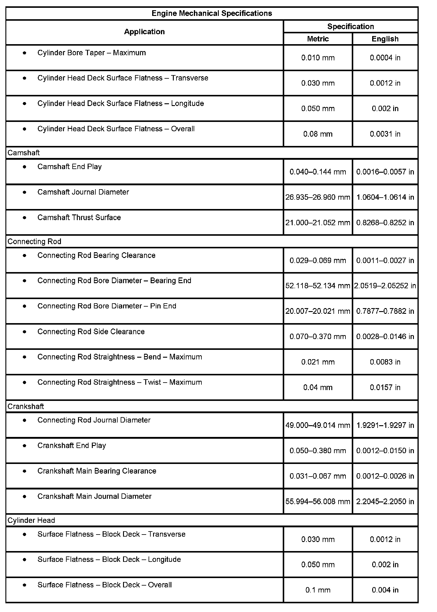 Engine Mechanical Specifications (Part 2):