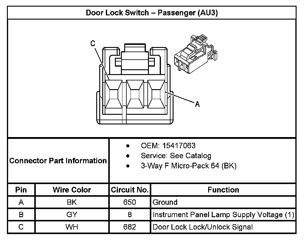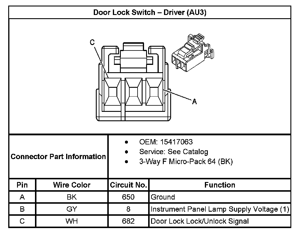 Door Lock Switch - Driver ( With RPO Code AU3):
