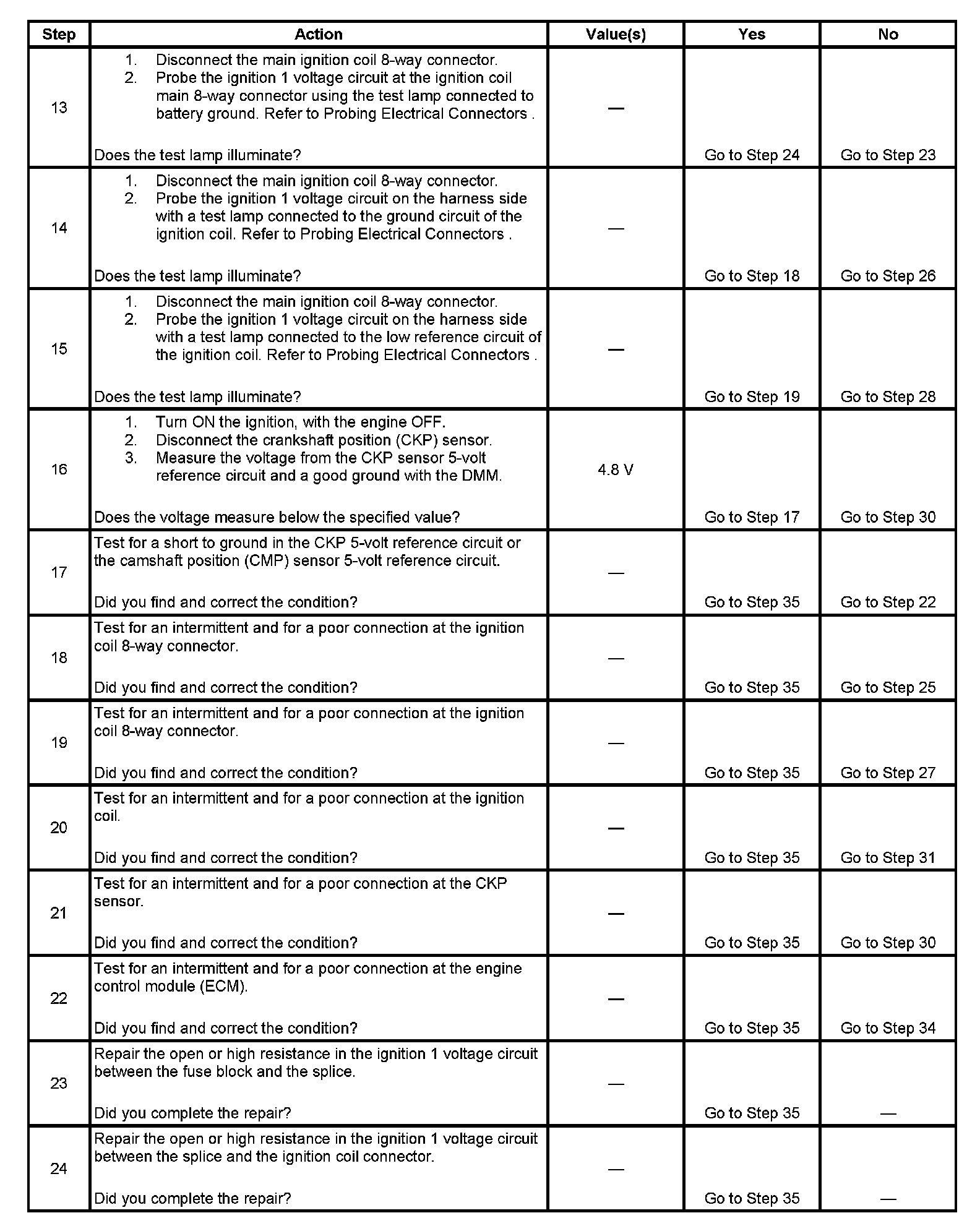 12. A good indication that the fuse is open is all off the misfire current counters are incrementing on one side of the engine. Inspect the ignition positive voltage circuit for a grounded circuit. If the fuse is open and the ignition coil circuits are OK, inspect the injector circuits for being grounded.