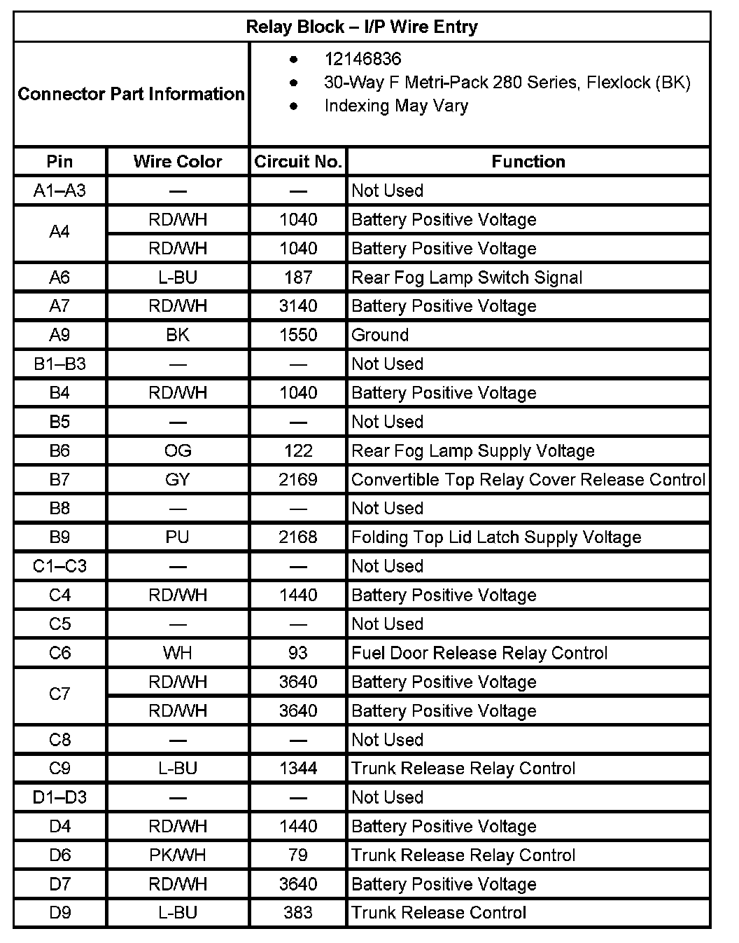 Relay Block - I/P Wire Entry: