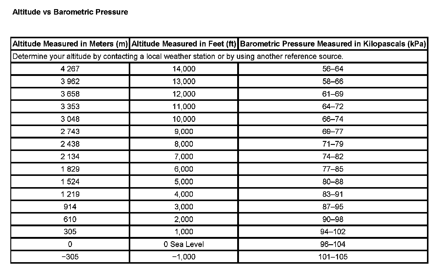 Altitude vs Barometric Pressure: