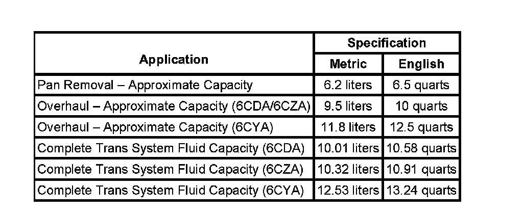 Fluid Capacity Specifications: