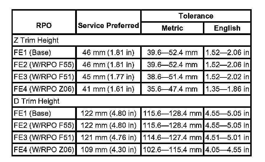 Trim Height Specifications: