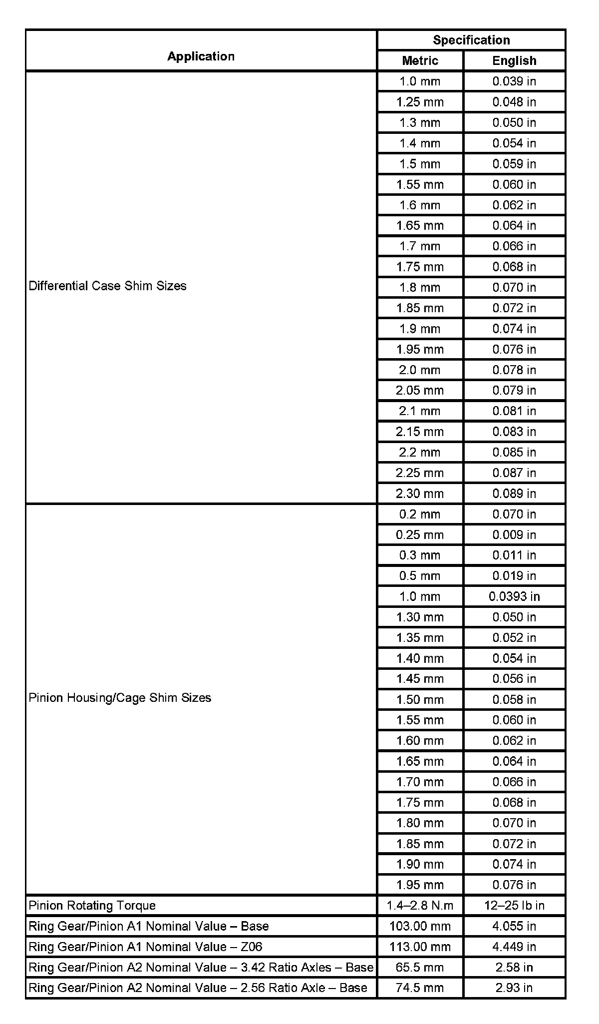Rear Axle Specifications