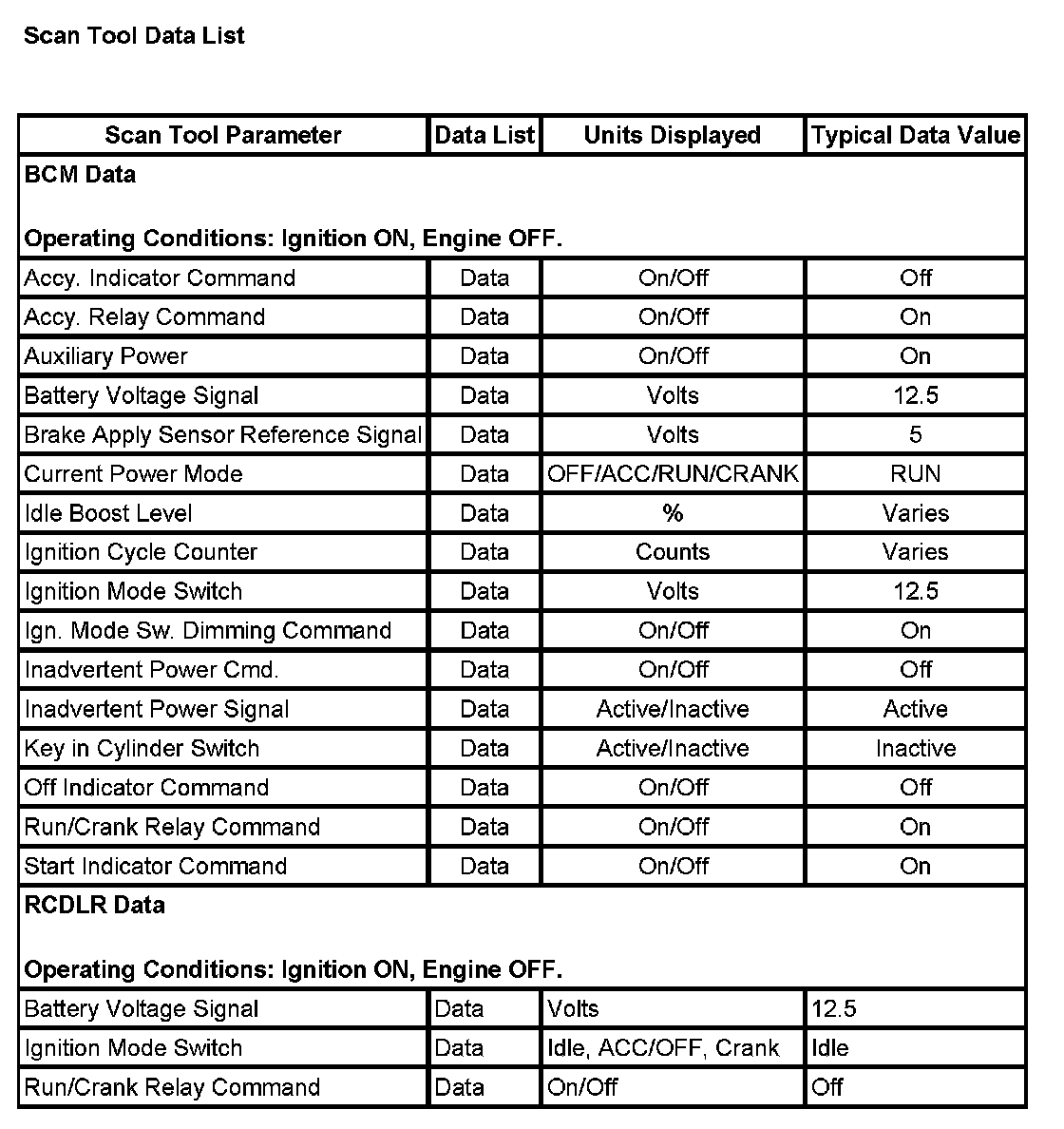 Scan Tool Data List: