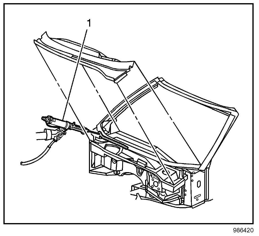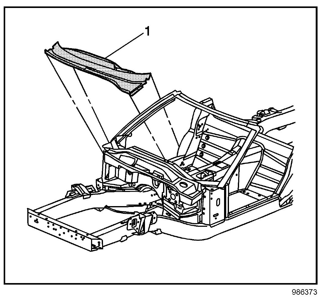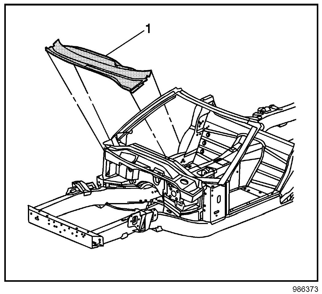 13. Apply a consistent bead of structural adhesive (1) to the bonding surfaces to mate with the upper plenum. Refer to Sheet Molded Compound (SMC) Panel Bonding.